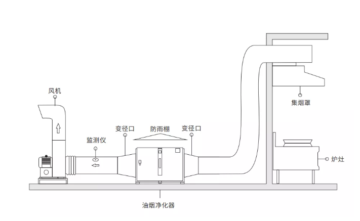 2)在(zài)油烟净化(huà)器跟引风机一起安装的情况下(xià)